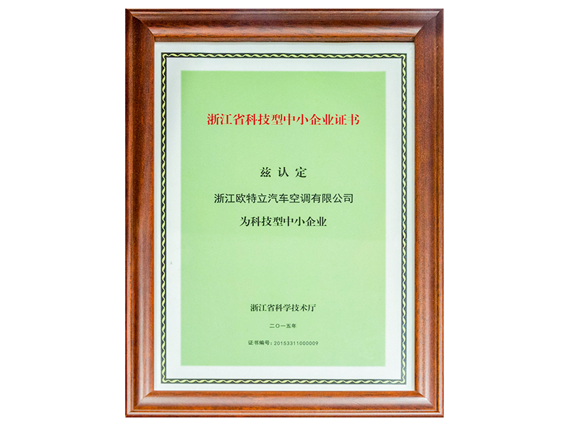 Zhejiang Science and Technology SME Certificate